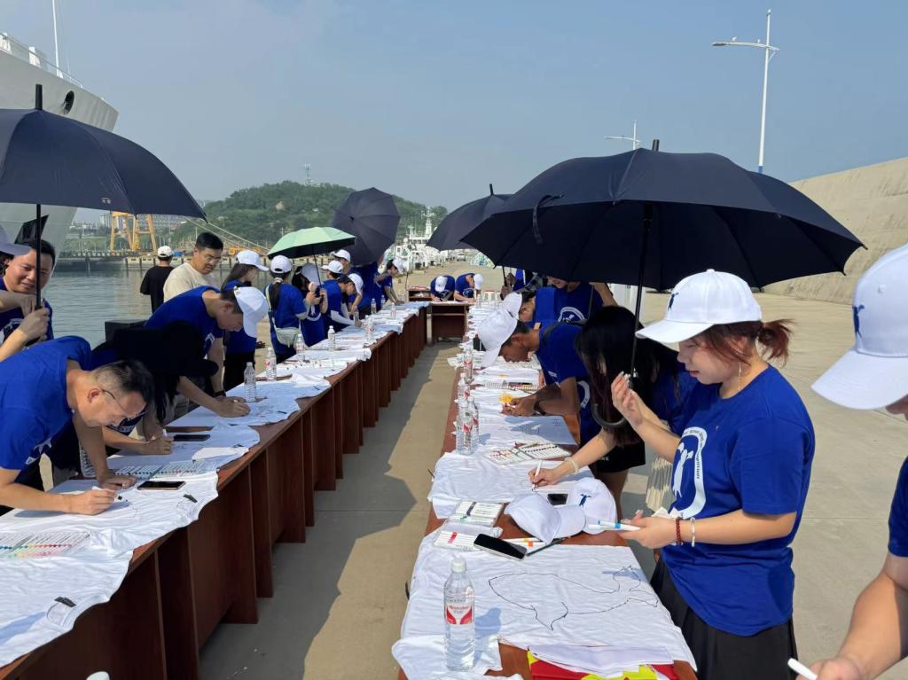 启航仪式前,公司师生党员在工作人员的带领和介绍下,先后参观了“大洋一号”实验室、驾驶室,了解到“大洋一号”先后执行了中国大洋矿产资源研究开发专项多个远洋的调查航次和大陆架勘查多个航次的调查任务,远洋科考成果斐然。启航仪式还设置了艺术创意环节,进行文化衫海洋主题创作。公司师生党员充分发挥艺术特色和专业优势,以“海洋”为灵感进行涂鸦创作,通过一笔一画表达着对海洋的热爱。从海洋生物到海洋景观,从海洋科技到海洋环保,每个作品都传递了保护海洋环境的责任感与使命感。
