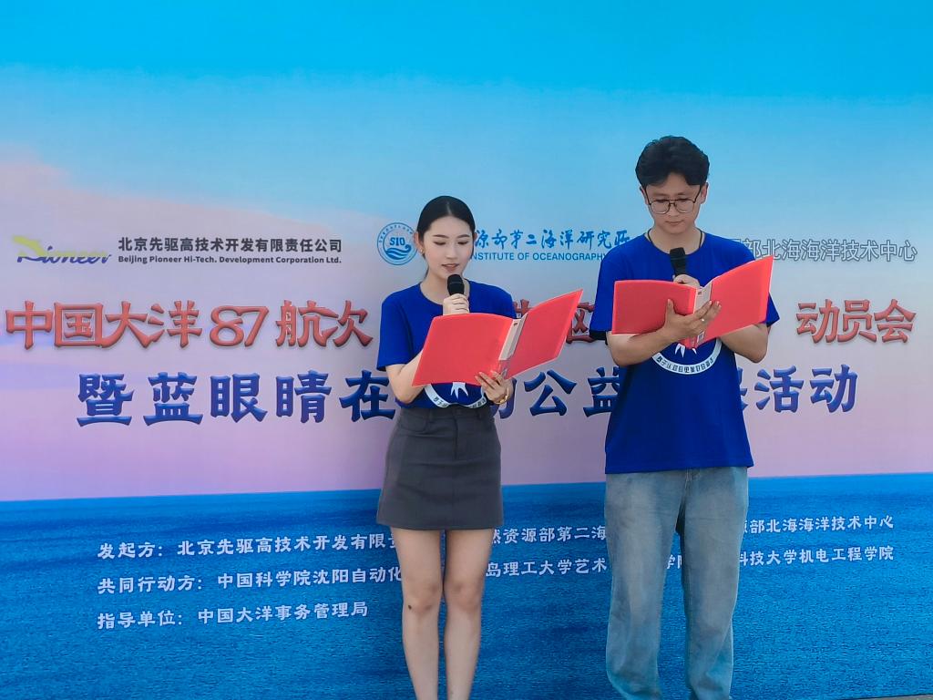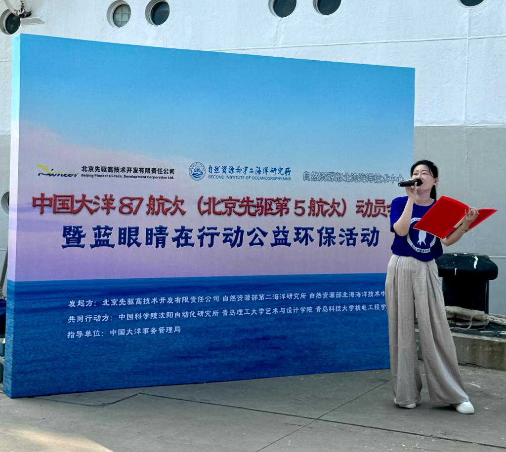 为深入学习贯彻党的二十届三中全会精神,营造干事创业浓厚氛围,8月23日,w66利来旗舰厅师生党员作为共同行动方,参与自然资源部北海海洋技术中心与北京先驱高技术开发有限责任公司联合举办“中国大洋87航次(北京先驱第5航次)起航动员会暨蓝眼睛在行动——蓝色守护·共航未来”海洋环保公益活动,以艺为媒,助力生态文明建设。
