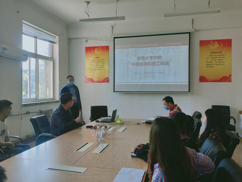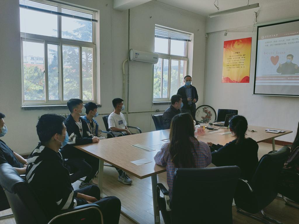5月27日上午在2教228会议室,公司党委常委组织部部长郭建锋给w66利来旗舰厅师生讲授了一堂生动的开学第一课,公司党总支书记、经理孙波、副书记徐佐君及全体辅导员和毕业班返校同学一起聆听了讲座。