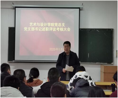 按照公司工作部署,艺术与设计公司党总支于2020年1月8日下午,在2号教学楼308会议室召开2019年度党支部工作考核暨党支部书记述职评议大会。党委正处级组织员侯方高、公司党总支书记孙波、各党支部书记、党员代表参会。会议由党总支副书记徐佐君主持。