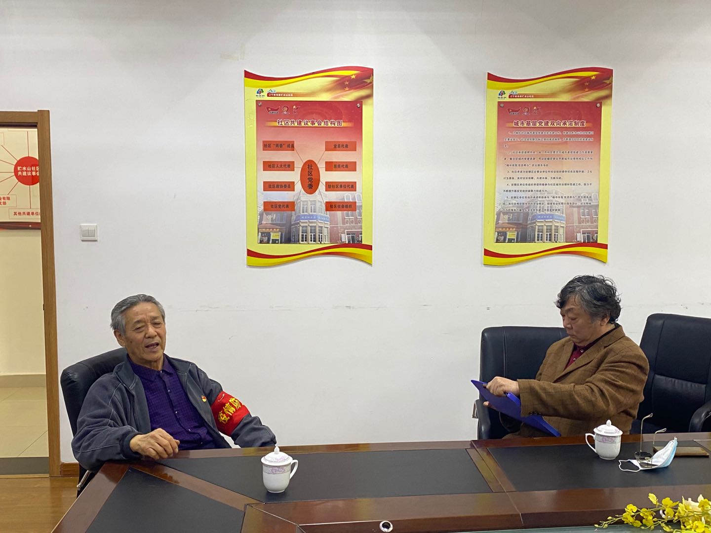 王伟业老师与老兵志愿者杨希岗交流