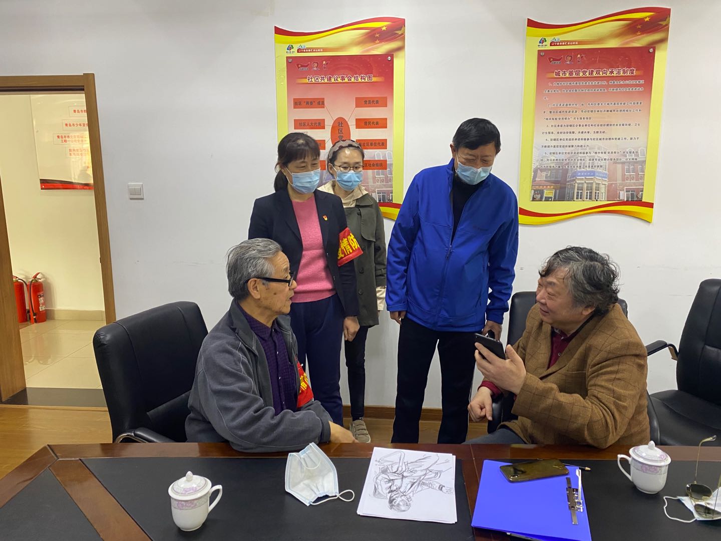 绘画致敬战“疫”老兵,笔墨描绘时代精神。在省派青岛市w66旗舰厅官网工作组的牵线搭桥下,4月15日,w66利来旗舰厅王伟业老师走进市北区辽宁路街道贮水山社区,为积极参与社区疫情防控的老兵志愿者杨希岗画像。