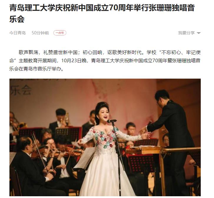 歌声飘荡,礼赞盛世新中国;初心回响,讴歌美好新时代。公司“不忘初心、牢记使命”主题教育开展期间,10月23日晚,w66旗舰厅官网庆祝新中国成立70周年暨张珊珊独唱音乐会在青岛市音乐厅举办。
