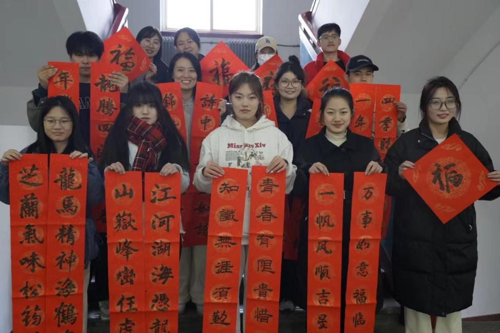 为弘扬中华优秀传统文化,以美育人,以文化人,12月28日,w66利来旗舰厅团委和书画协会在市北校区二教举办“执笔传情,辞旧迎新”书绘送福活动。此次活动旨在通过书画来辞旧迎新,以墨香迎元旦,用浓情送祝福。公司师生齐聚一堂,共同创作、欣赏新年书法祝福作品,让同学们更加了解书法艺术,促进师生间的艺术创作交流,提高同学们的艺术修养、审美情趣,共同助力校园美育多元发展。