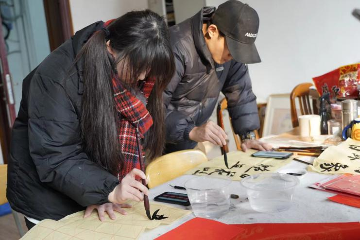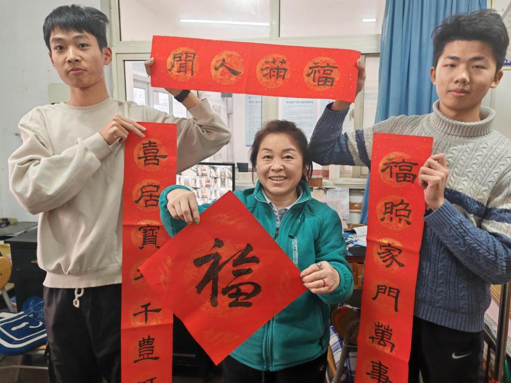 活动现场墨香四溢,气氛温馨热烈,师生们手持毛笔,在红纸上挥洒自如,一幅幅对联如云鹤游天,群鸿戏海般蓬勃而出。如果说对联体现的是同学们对新年的期盼,那么这一个个“福”字正是同学们对“福”到的期许。福倒即福到,蕴含的正是同学们对美好生活的期许。公司团委书记、学工办主任张恬老师说:“练字的过程是一笔一墨一砚一人一心的完美结合。一画之间,变起伏于锋杪,一点之内,殊衄挫于毫芒。读书读世界,写字写人生,一幅幅极具艺术感染力凝聚着咱们师生对新年美好生活的憧憬和向往。”