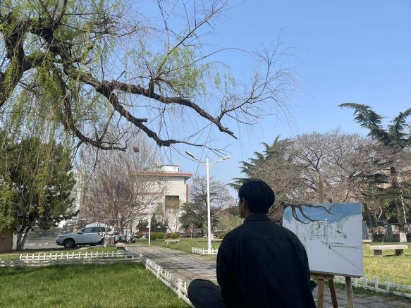春日的校园内遍布着艺院员工认真写生的身影,他们用画笔记录最美的校园,画出眼中的风景。风景写生就是让员工走近大自然,在户外光线下,充分感受大自然丰富多彩的色彩变化。任课教师李鑫现场示范教学,从写生角度选取、构图、用笔、调色等方面进行示范,同学们把校园美景以及对专业的热爱之情用画笔注入到自己的作品中,沉浸写生的艺院学子也成为公司一道靓丽的风景线。