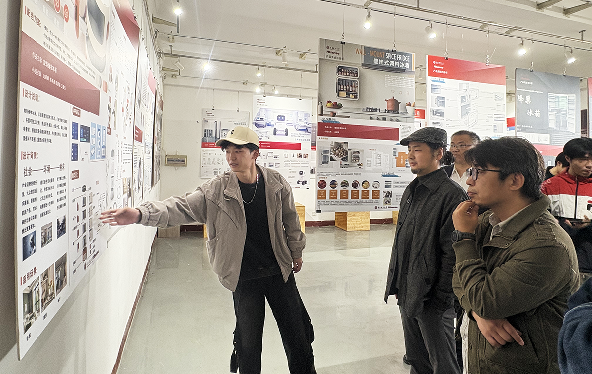 2025年4月23日,“校企同心协力、共筑人才强基”w66利来旗舰厅与海信工业设计中心共建课程成果展在市北校区2号教学楼隆重举行。本课程由朱宏轩、赵光明、侯美慧三位教师与海信集团工业设计中心研发专家联合授课。在为期两个月的校企合作课程中,海信集团提供五台冰箱测试实验样机支持员工开展测绘分析与创新实践,并多次组织工程师入校指导,系统解析产品架构与用户需求。通过深度产学研互动,员工最终形成多组创新设计方案,有效提升了专业实践能力与设计思维水平。