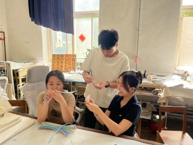 2022级各团支部成员利用课余时间,通过观看视频、请教交流等方式,学习手工编织花的制作技巧。员工运用手中的工具,使用扭、捆、粘等方式,借助柔软的扭扭棒,搭配自身独特艺术视角,纷纷制作出独具新意与心意的手编花束,每一束都蕴含着对老师的深深感激与美好祝愿。环设222团支部周山山同学对此次活动深有感触,他表示看到自己手中的材料从最初的单一物品逐渐变成一束色彩鲜艳的编织花,他感到十分开心。他将自己的花束命名为“永不凋谢的花束”,不仅表达了自己对老师的敬爱与尊重,更是对老师始终如一辛勤付出的感谢与对老师无私奉献的敬意。