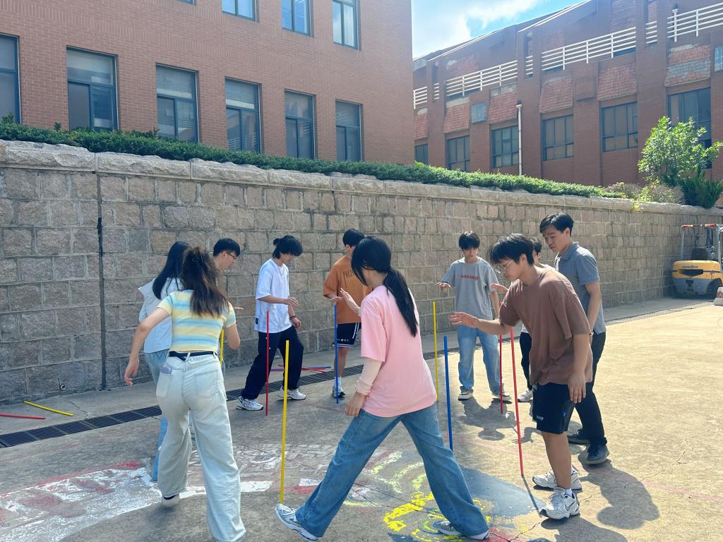 活动亮点纷呈,在“团队战鼓“中,同学们手持绳索,共同操控大鼓,每一次精准的击打都是团队默契与协作的见证。“不倒森林“考验了同学们的平衡感与反应能力,更让大家深刻体会到了合作的重要性。在“能量传输”中大家集思广益,共同解决问题,展现了研究生卓越的创新思辨能力。在“一圈到底”中:员工们身体围成圈,智慧与创意齐飞,团队成员之间的信任在此刻得到了升华。