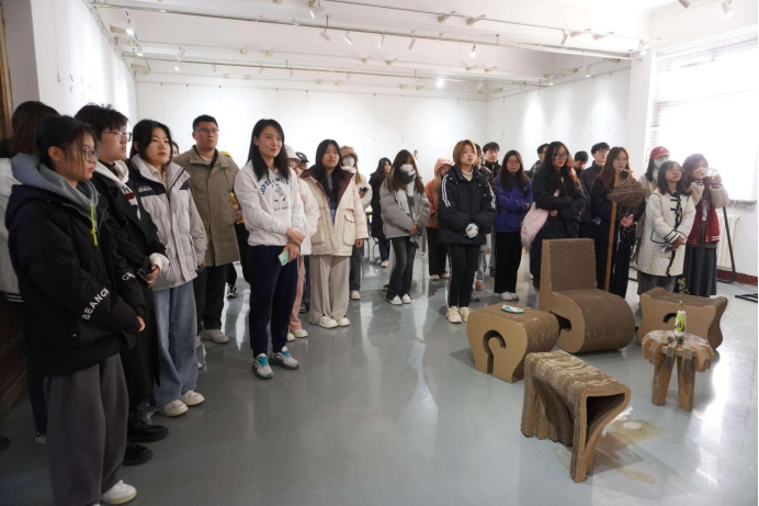 11月14日上午,艺术与设计公司党委书记吕楠、副经理丁南、经理助理匡富春、昌隽如、室内系主任刘珊、副主任贺德坤、团委书记张恬及师生代表一行在公司展厅参加了环境设计专业的《家具设计》课程成果汇报展开幕式。开幕式由指导教师王福云老师主持。