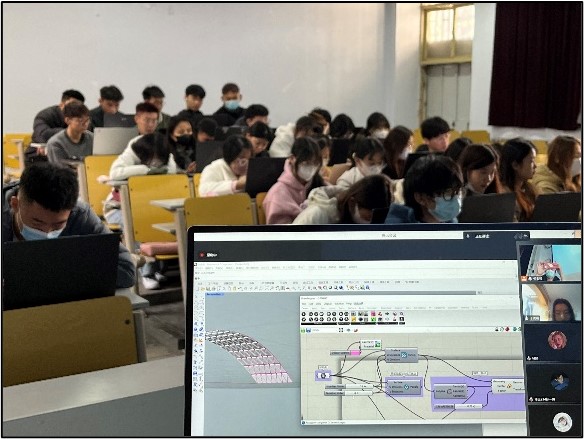 第二场专题讲座由奥雅设计公司讲师于麦琪为同学们分享了参数化设计相关内容。他讲解了参数化在公园地形建模中的重要性,使用Grasshopper进行了基础的几何体建模,初步感知参数化设计的便捷。最后,和同学们分享了参数化设计的案例及其应用,让同学们了解参数化设计是可以满足当下专业设计需求的重要工具之一。