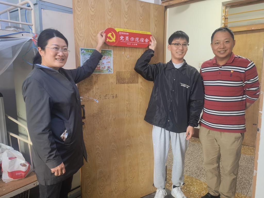 活动中,吕楠为公司每一间员工党员宿舍挂牌,与员工党员亲切交流并合影留念。她表示,挂牌“党员示范宿舍”不仅是对每位党员的认可,也是一种激励,更代表着对新时代青年党员的一种责任。党员同志们要能够时刻用更严格的标准要求自己,将理想竖起、将本领练起、将担当扛起,充分发挥“一名党员、一间宿舍、一面旗帜”的示范引领作用,坚持党建带团建,激励和引领广大青年坚定不移听党话、感党恩、跟党走。徐佐君解读了公司最新疫情防控规定,动员员工党员发挥模范带头作用,主动关注疫情动态,提高疫情防控责任意识,共同构筑校园疫情防线。