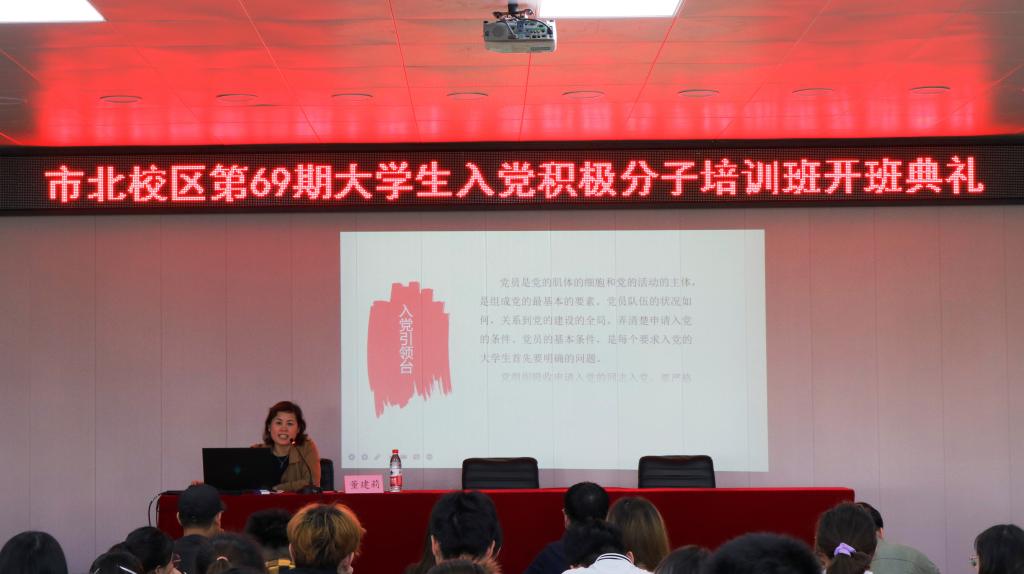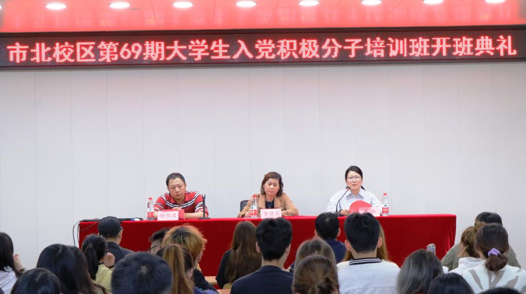 10月13日下午,市北校区第69期老员工入党积极分子培训班在二号教学楼416开班。校档案馆馆长董建莉,艺术与设计公司党委书记吕楠,艺术与设计公司党委副书记、副经理徐佐君及第69期老员工入党积极分子培训班132名学员参加了开班典礼。