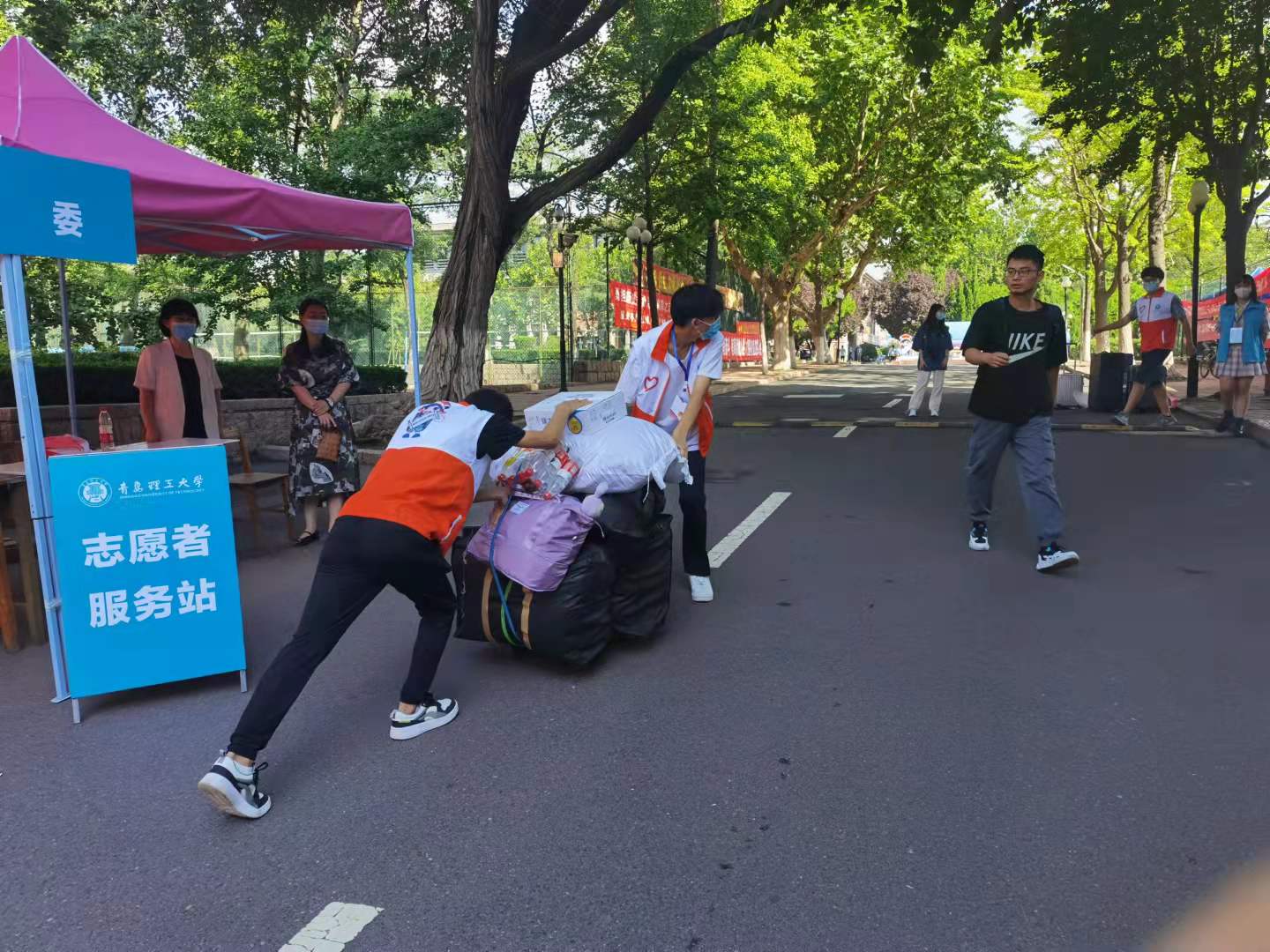 晨光熹微,迎新志愿者们在辅导员的带领下早已在青岛站等候多时,热情迎接一张张满怀憧憬的新面孔。市北校区,主干道上迎风招展的彩旗和标语,公司清晰醒目的指示牌,精心设计的签名墙和2021新生手册……都向公司的新主人发出最温暖的问候。