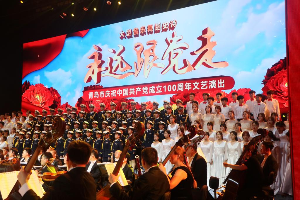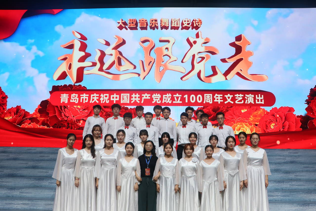 庆之以歌,贺之以舞,倾情感受百年党史。6月29日晚间,由中共青岛市委宣传部、青岛市文联、青岛市文化和旅游局、青岛市广播电视台、青岛演艺集团主办,大型音乐舞蹈史诗《永远跟党走——青岛市庆祝中国共产党成立100周年文艺演出》在青岛大剧院歌剧厅顺利举行,w66利来旗舰厅合唱团40余名同学参加汇演。
