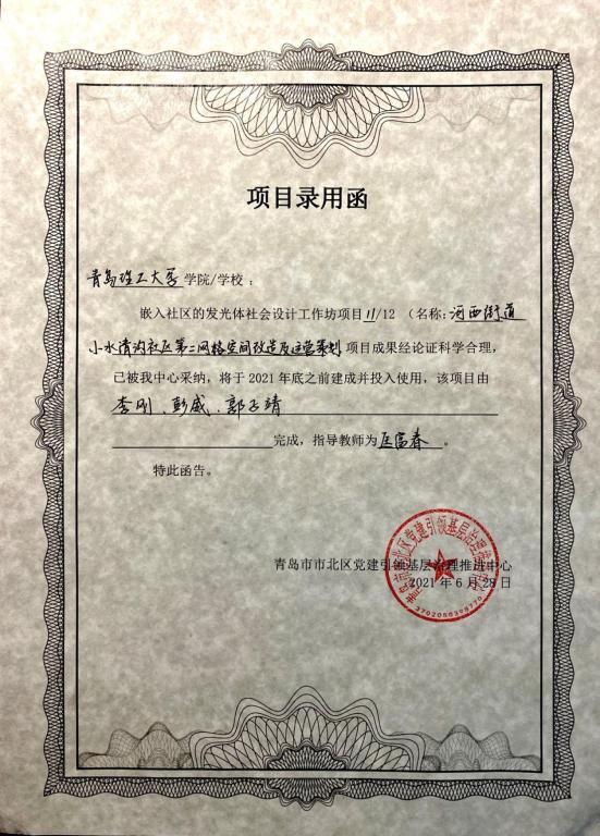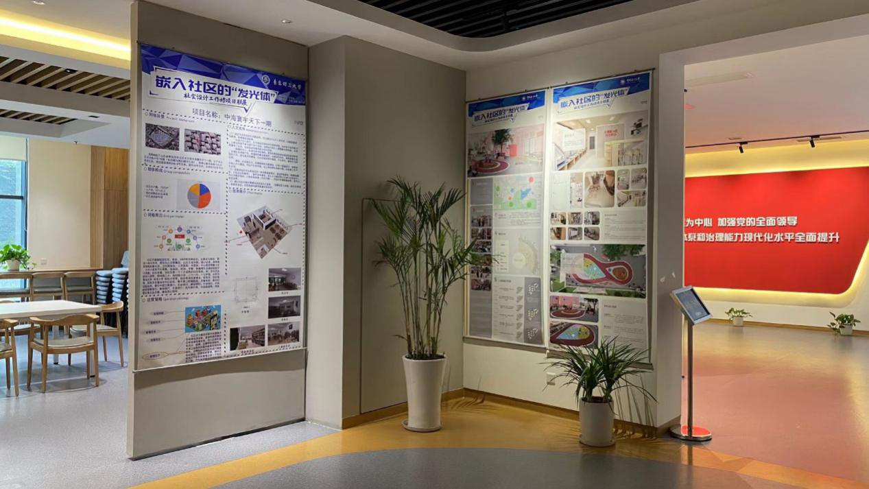 本次活动集中展现了1场工作坊、3个城市、5所高校、12个团队、88天、76名员工在社会设计工作坊项目上的研究成果。w66利来旗舰厅李刚、彭威、郭子靖三位同学组成工作坊,开始对河西街道小水清社区中海寰宇天下一期7号楼,进行设计改造,前后经过案例分析、实地调研、需求分析、草图绘制、方案修改、建模渲染等过程确定了最终的设计方案。项目成果经论证科学合理,已由市北区党建引领基层治理推进中心采纳,将于2021年底前建成并投入使用。