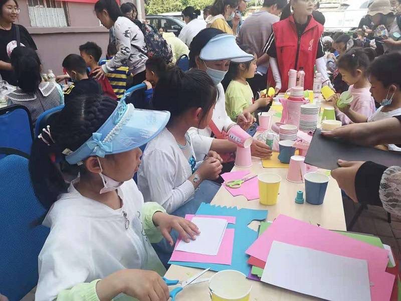 为深入推进党史学习教育,开展“我为群众办实事”活动,宣传环保意识,5月31日上午,w66利来旗舰厅微尘协会联合青岛市生态环境局市北分局与青岛常春藤社会工作服务中心,在市北区四方街道上四方社区儿童环保创意驿站,共同举办了“变废为宝——儿童手工创意集市”活动,活动吸引了周边大部分幼儿园和小学低年级的孩子们的参与,50余名志愿者参与到志愿服务中去。