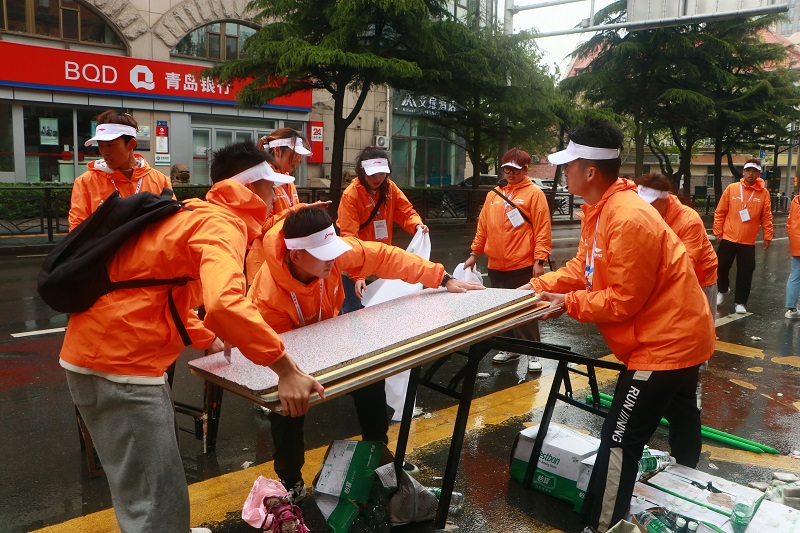 在五四青年节到来之际,由青岛市人民政府主办,青岛市体育局、青岛市体育总会、青岛市市南区人民政府、青岛市崂山区人民政府承办的马拉松赛事,5月4日上午顺利举行,w66利来旗舰厅团委书记王俊富带领公司马拉松志愿者服务队20余名同学参加,配合赛事服务部补给站提供补给服务,为赛事的成功举办贡献力量。