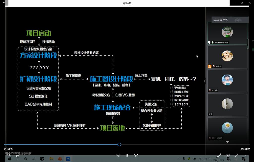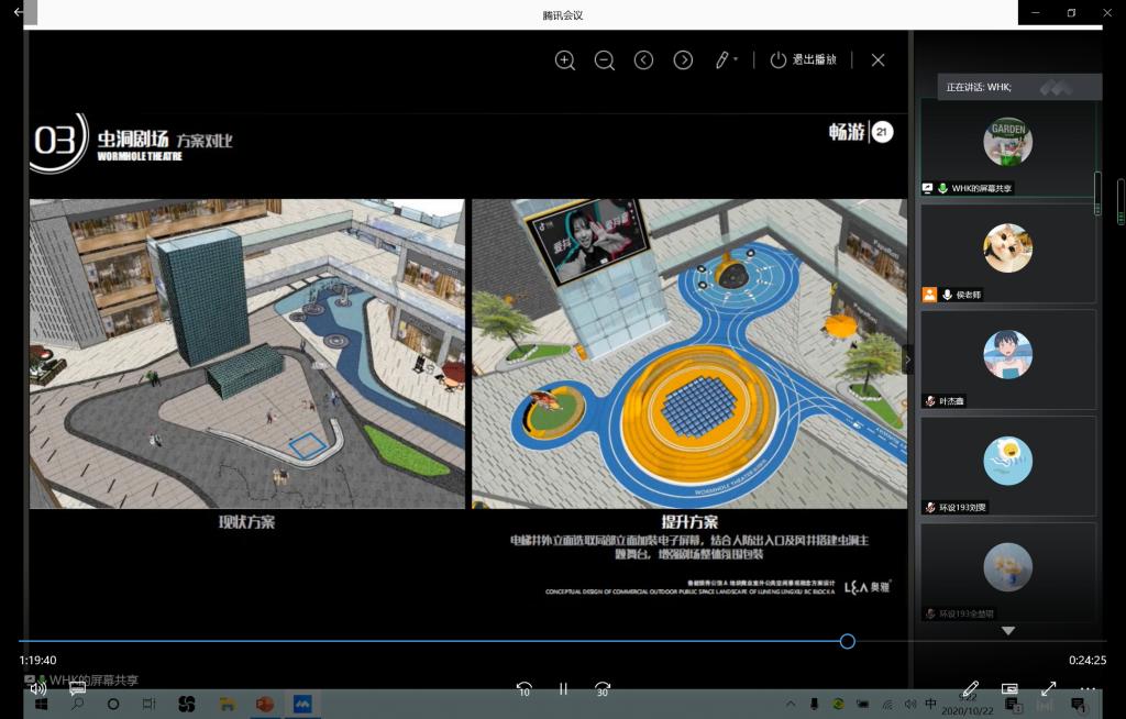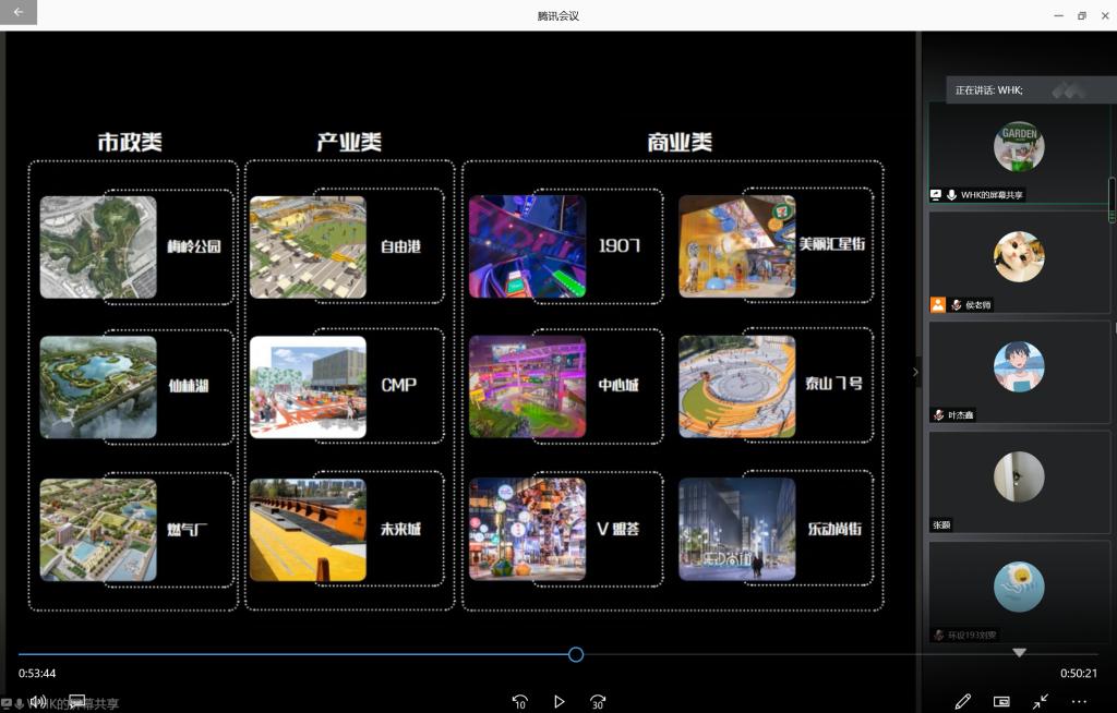 课程的第二个环节,由奥雅设计青岛分公司高级设计师魏洪凯为同学们做精彩的专业分享。魏洪凯曾经是公司2009级的理工学子,时隔十年,他与w66旗舰厅官网的学弟学妹们共聚《设计原理》的在线课堂,通过对园林规划设计流程的讲解以及两个优秀设计的案例的分享,为我们带来了环境设计专业最前沿的设计理念和设计动态。本次分享的两个案例一个是青岛台柳路1907商街景观设计,一个是鲁能领秀商业室外公共空间景观设计,这两个项目都是现在热度比较高的城市商业空间景观更新项目。通过魏洪凯的案例分享,让同学们对课堂理论知识有了进一步的认识,使书本上的知识更接地气了。