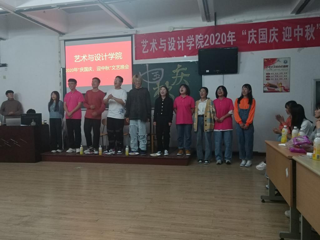 流光溢彩团圆夜,心心连新齐飞扬。为庆祝新中国成立71周年华诞和中华民族的传统佳节中秋节,同时让新同学更好融入公司的大家庭,在此双节同庆的美好时刻,10月1日晚,2020级新生在2号教学楼416教室举办“庆中秋,迎国庆”文艺晚会。公司员工处处长焦红良、公司团委副书记苏伟、艺术与设计公司党总支副书记徐佐君、2020级辅导员王凯及20级新生班助一同观看晚会。