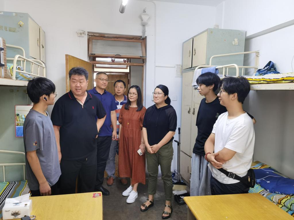 为进一步做好疫情防控和新生接待工作,及时了解新生入校后对校园的适应情况,加强师生联系,减轻新生进校的不适感和陌生感。9月5日上午,艺术与设计公司党委书记吕楠,经理孙波,党委副书记、副经理徐佐君,副经理李泉涛,经理助理丁南,员工工作办公室主任、团委书记张恬和新生辅导员刘芳兵到新生宿舍进行走访,对新生表示慰问。