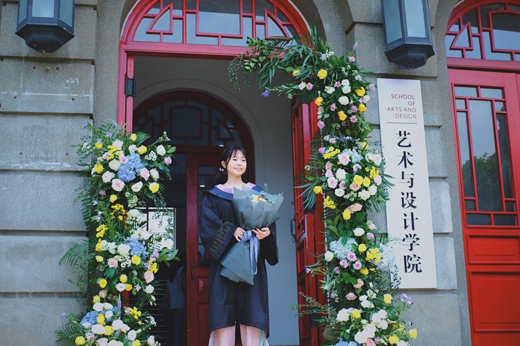 花瓣落下,飘零四方。翩纤玉手,携作花廊。兮兮揖别,襟沾阑干。花间绚烂,逾尔长青。告别并不只有伤情,就用鲜花和青理说再见吧。祝愿2019届毕业生们前程似锦,美梦成真。(撰稿:舒文;审核:徐佐君)