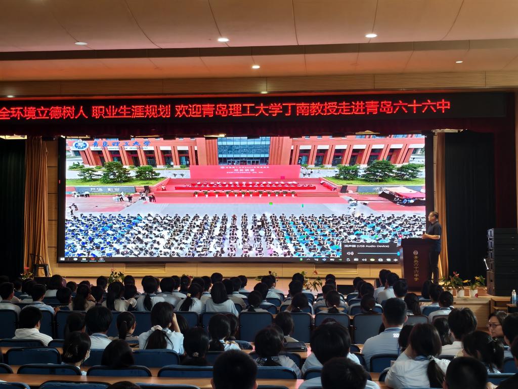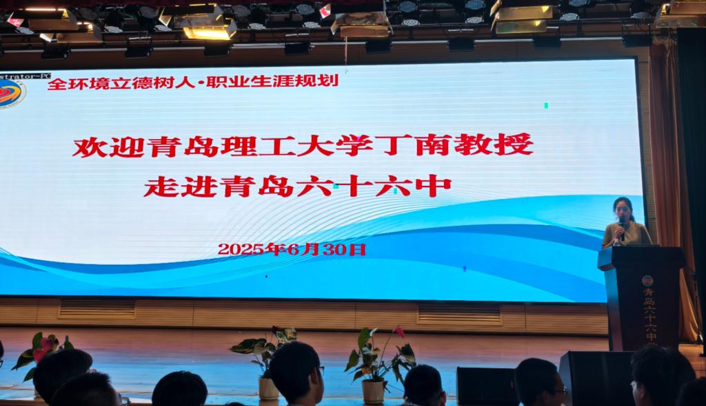 6月30日下午,w66旗舰厅官网2025年招生宣讲会在山东省青岛第六十六中学礼堂举办。w66利来旗舰厅副经理丁南教授主讲,六十六中学副董事长庄永奎及三百余名师生参加,宣讲会由教导主任王璐璐主持。