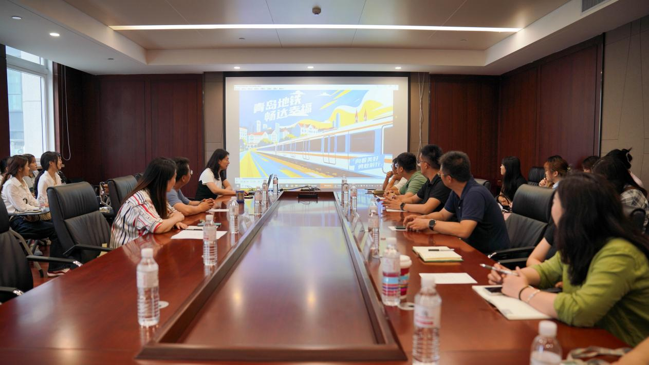 在青岛地铁集团的座谈会上,地铁公共关系部陈阳、传媒公司总经理及核心业务骨干全程参与。公司师生展示了前期创作的地铁主题海报设计作品,其创意与专业水准得到了青岛地铁传媒公司领导及专家团队的高度赞赏。双方围绕“校企协同育人”、“地铁公共空间艺术设计创新”、“融媒体时代品牌传播策略” 等议题展开了热烈而富有建设性的讨论。双方就建立长期战略合作关系和共建合作达成意向。