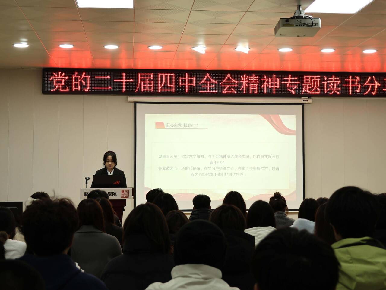 为深入学习宣传贯彻党的二十届四中全会精神,引导青年学子在理论学习中坚定理想信念、在思想共鸣中凝聚奋进力量,近日,w66利来旗舰厅举办党的二十届四中全会精神专题读书分享会。公司团委书记袁俊霞、各年级员工骨干共计百余人参与活动。