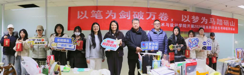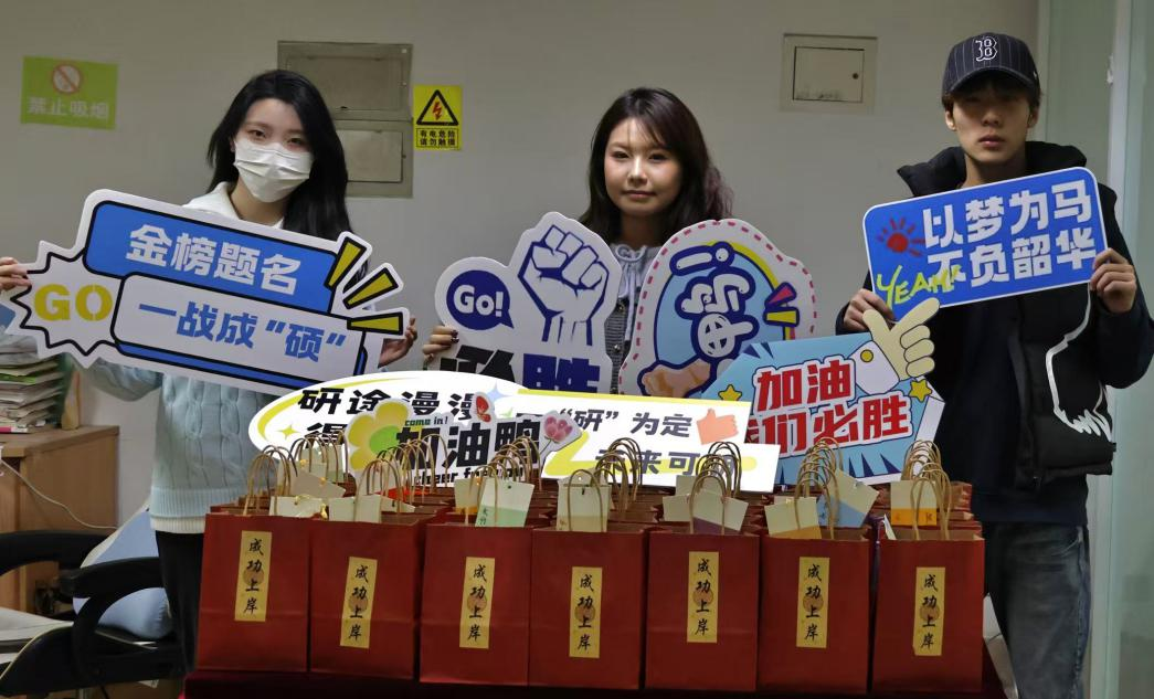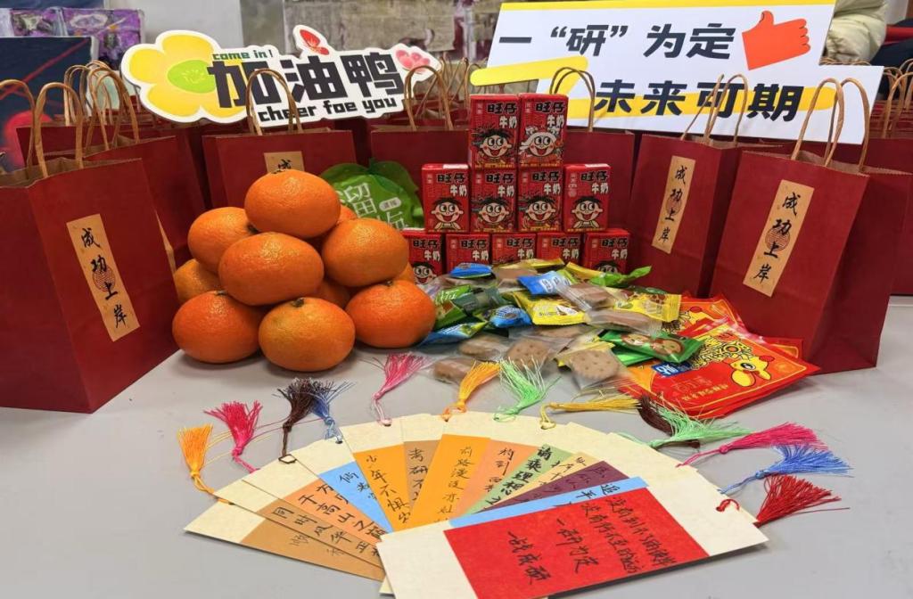 活动现场暖意融融,公司精心筹备的“考研助力大礼包”成为传递温情的重要载体。礼包内不仅包含寓意“心想事‘橙’”的橙子、补充能量的牛奶与巧克力、驱散寒意的暖贴,更有公司老师亲笔书写考研寄语书签,每一份礼物都凝聚着师生同心的创意与温情,让物质关怀与精神鼓舞双向赋能。“看到大礼包和老师的祝福卡片,瞬间感受到了‘艺院大家庭’的温暖,备考的疲惫都消散了不少。”一名接过礼包的员工感动地说。