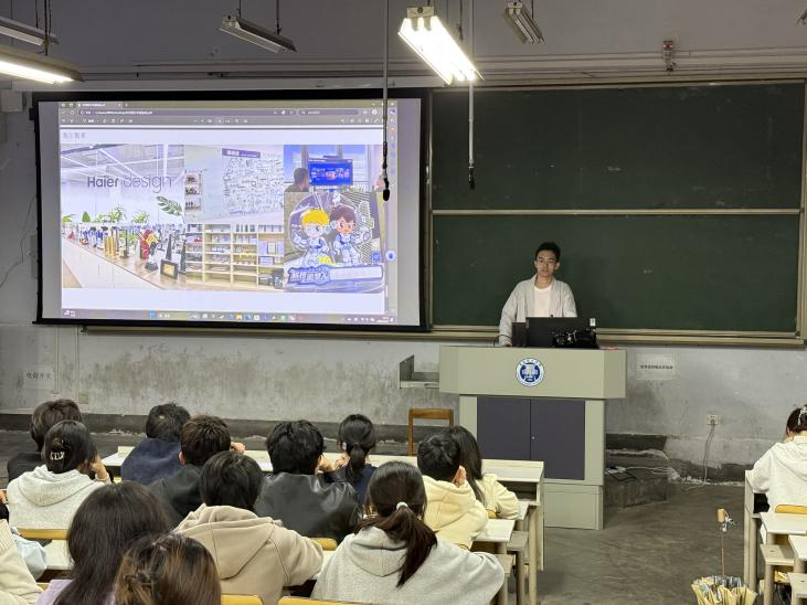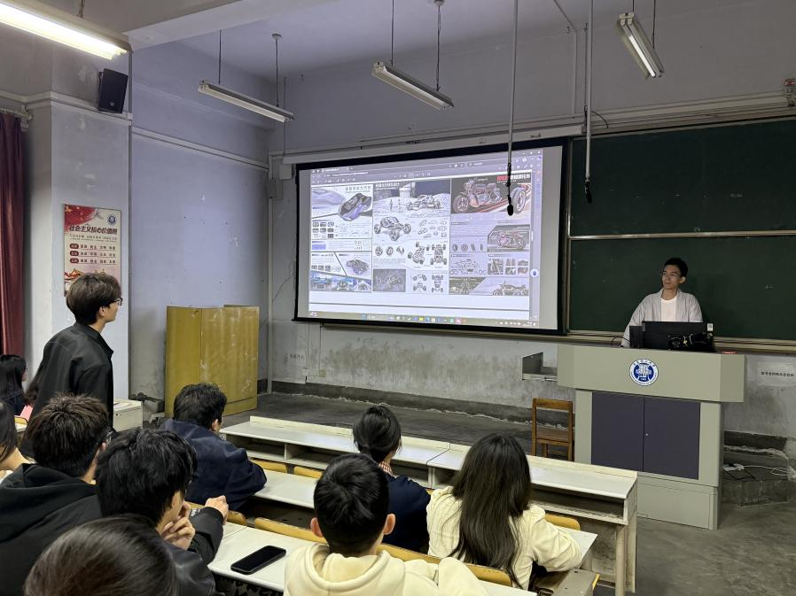 分享结束后,同学们踊跃提问,就“跨学科团队协作”“AI工具使用技巧”“备赛时间规划”等问题与学长深入交流。潘旭旭耐心解答,并寄语同学们:“保持对设计的热爱,在实践中积累经验,才能在竞赛与职业道路上脱颖而出。”