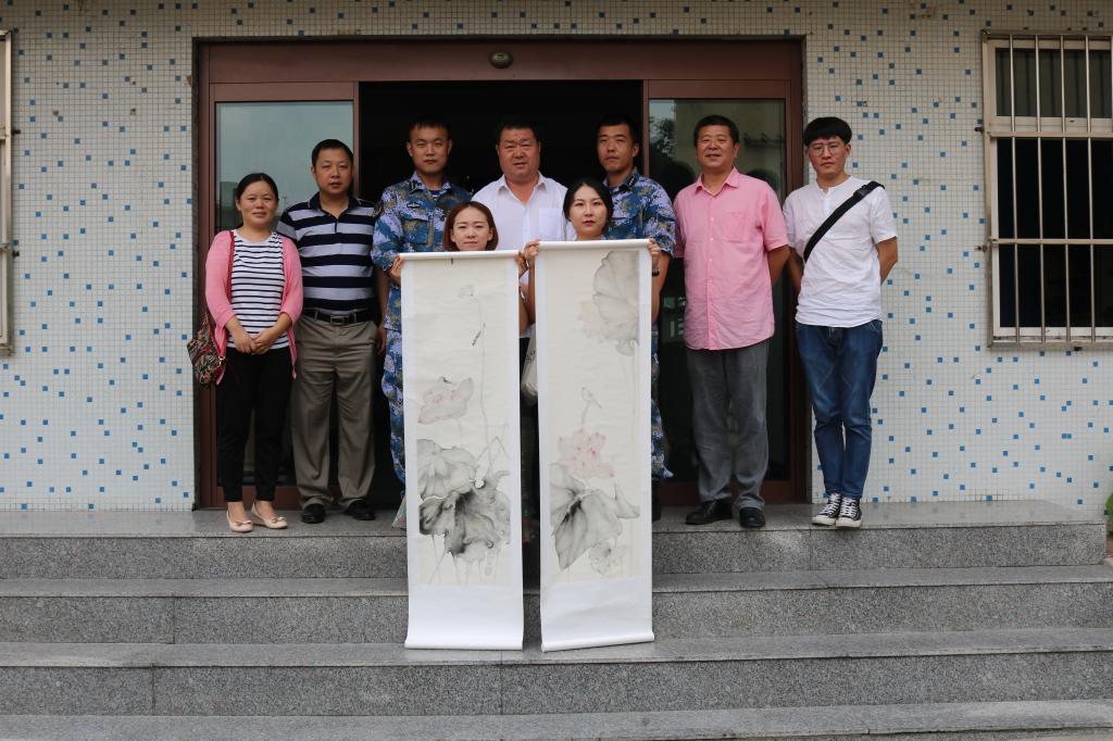 最后,孙波代表公司向部队赠送了员工的绘画作品。