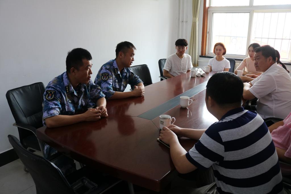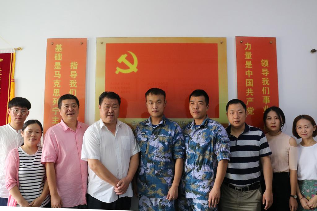为贯彻十九大报告中指出的“形成军民融合深度发展格局”的战略部署,深入实施军民融合发展,9月6日,艺术与设计公司党总支书记孙波、党总支副书记徐佐君、团总支书记刘红艳、音乐教研室副主任张萌和部分员工党员赴92212部队警勤连,与部队官兵就今后的军民共建事宜做了深入的探讨。
