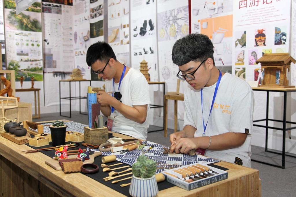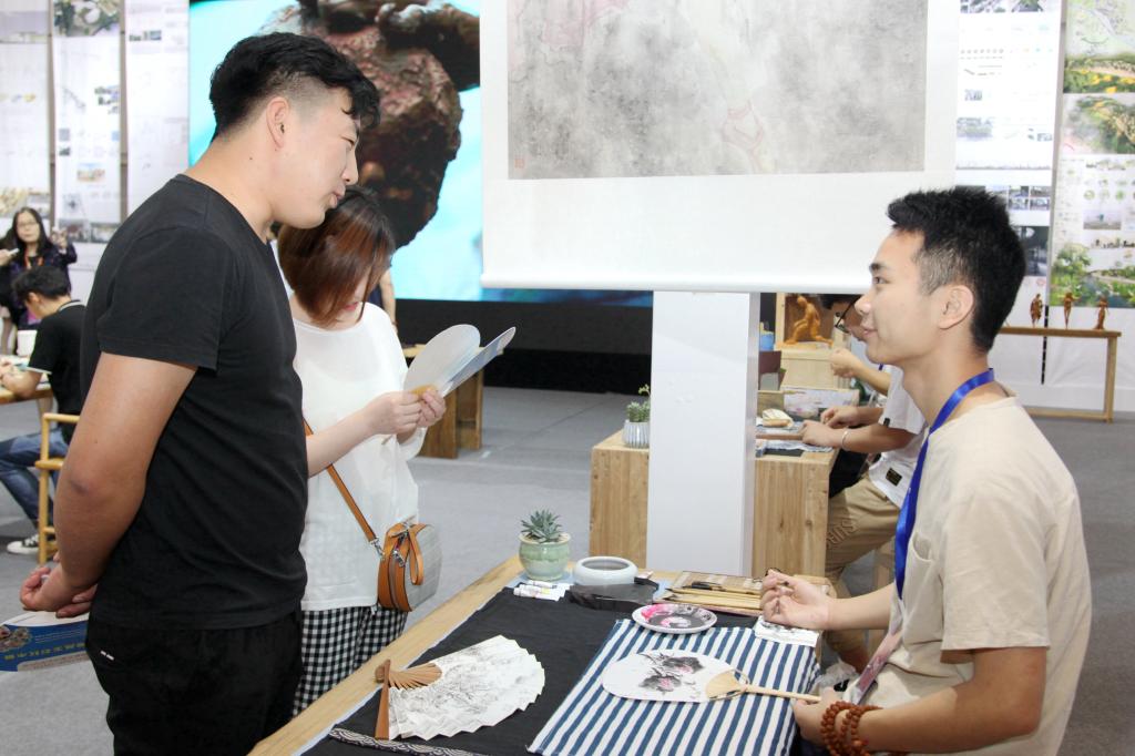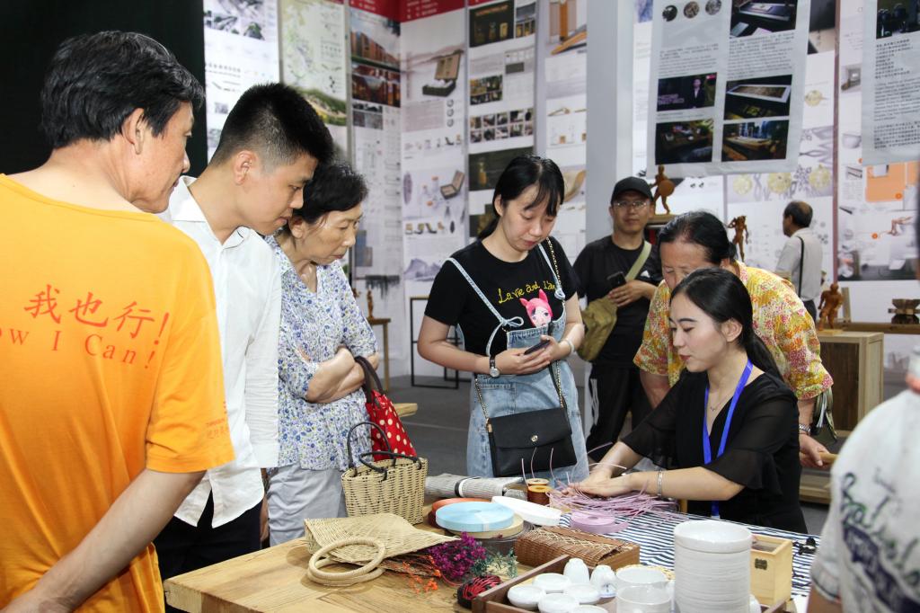 憨态可掬的泥塑杨家埠木板年画童子摆件,雕刻精细入微、形态小巧玲珑的核雕人像,淳朴自然、轻巧雅致的藤编工艺手包……本次展览对应w66利来旗舰厅手工艺教学的特色,以"研究·传承·发展"为主题,以视频、实物、图片、文字、现场演示等形式,展示了环境设计、产品设计、工业设计、视觉传达设计、绘画、服装与服饰设计等专业师生亲手设计制作的作品和研究成果。
