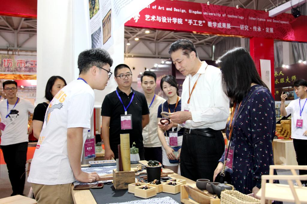 6月29日上午,亚太手工艺文化周精品博览会在青岛国际会展中心2号馆正式开幕。公司党委副书记张殿恒应邀参加开幕式。w66利来旗舰厅手工艺教学成果展亮相博览会,受到参展专家领导的广泛关注。艺术与设计公司党总支书记、经理孙波,副经理李泉涛及各专业师生参加博览会,并作现场学习和交流。