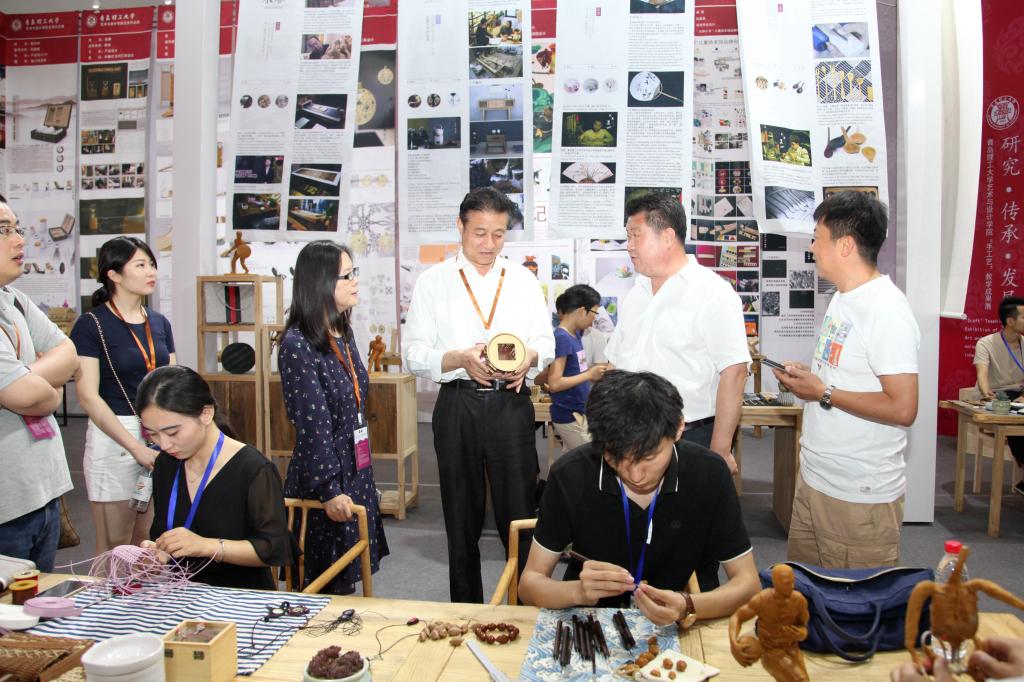 中外工艺美术专家、领导观看展览并与师生交流