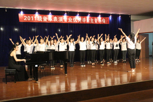 本次音乐会由音乐表演专业2011届的毕业生带来。除了乐器之王钢琴,中国古典乐器古筝、二胡也双双出现在舞台上,同学们的合唱、独唱声更是此起彼伏、悦耳动听。