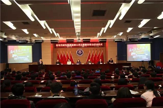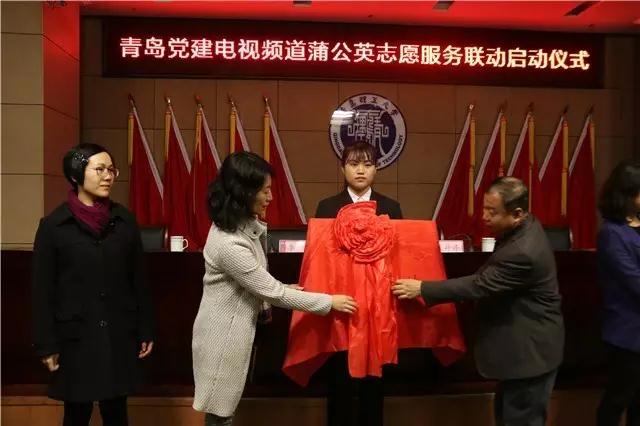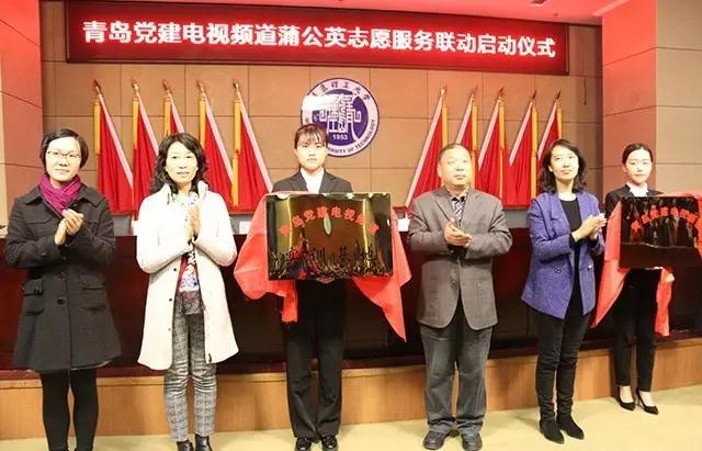 最后,与会领导和嘉宾共同为青岛党建电视频道和w66旗舰厅官网“蒲公英志愿服务联动共建单位”及w66利来旗舰厅“蒲公英志愿服务实训基地”揭牌。