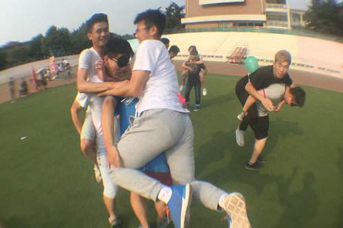 本次趣味运动会以放松身心、愉悦生活为主旨,采取竞赛形式进行。运动会共分为六个项目,“爆炸气球”队在首轮比赛“你来比划我来猜”环节就拔得头筹,率先赢得下一局,显示了其敏捷的反映速度和丰富的词汇量。在接下来的“夹豆子接力”、“大海捞针”、“凑一块” 、“盲人大战气球”、 “杯水传情”环节则充分体现了团结协作的重要性。比赛中,大家欢声笑语,不亦乐乎,同学紧紧团结在一起,让每一个艺院同学更深刻的感受到艺院大家庭的力量。一旁同学们的加油声此起彼伏。经过六轮激烈的比拼,第二组“长裤”队获得了冠军。