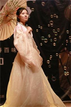 在本届炫衣节的亮点——自创服饰展示环节,各位参赛选手用自己独特的方式一一上场自我介绍,并说明了创作理念、所用材料。随后,设计选手与自己的模特纷纷登场,展示了自身的风采和自创服饰的无限创意。不同的构思幻化出各色美丽的衣服:艳丽的小短裙,透露出活泼向上的积极;更有雪白的晚礼服,结合了所有女生对白色的幻想,一尘不染。