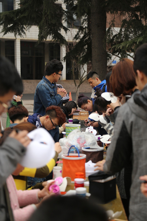 此次活动共分为传统组和现代组。活动当天,吸引了许多同学参加和观看。参赛选手们充分展开想象力,利用各种颜料,在白色的脸谱上设计出各具特色、风格多样的作品。