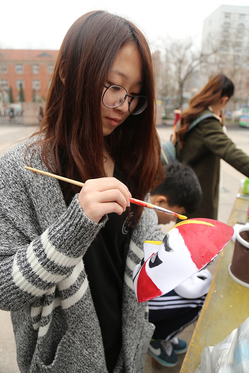 为弘扬中华优秀传统文化,促进民间脸谱文化特别是京剧脸谱文化的普及和传播,4月1日上午,w66利来旗舰厅“染墨谱绘”活动在科技广场拉开帷幕。